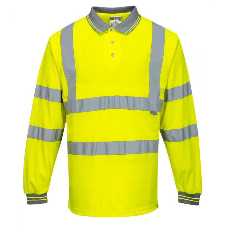 The Portwest Hi Vis Long Sleeve Polo is made purely from 100% polyester and it does not weigh above 175gsm.